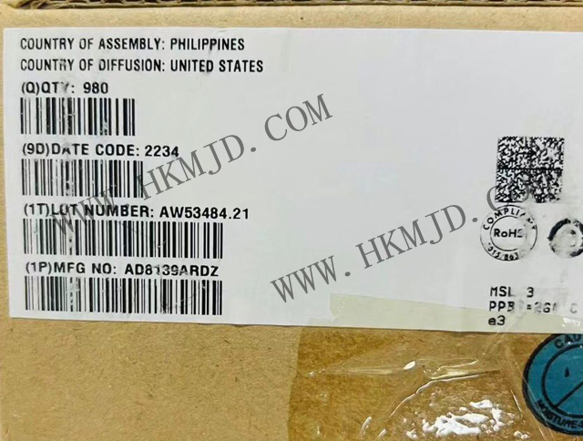 AD8139ARDZ采用ADI公司專有的第二代XFCB工藝制造,可實(shí)現(xiàn)低失真特性,輸入電壓噪聲僅為2.25 nV/√Hz。